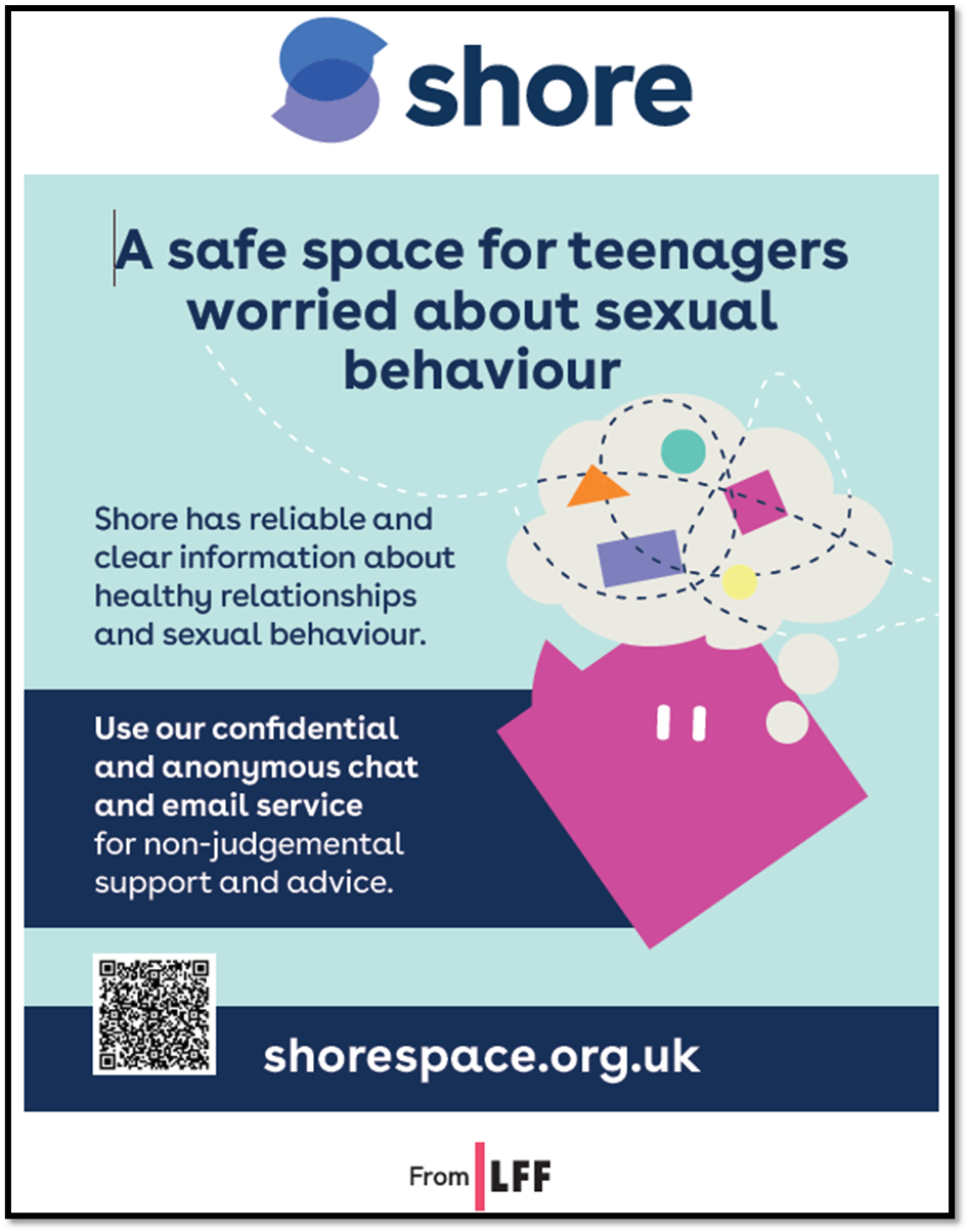 Shore is a safe space for teenagers worried about their own or someone else's sexual behaviour. On the site you can find information and advice on important topics like consent, sex and the law and how to be safe online. Shore also offers an anonymous and confidential chat and email service where young people can get non-judgemental support for any worries they may have. |